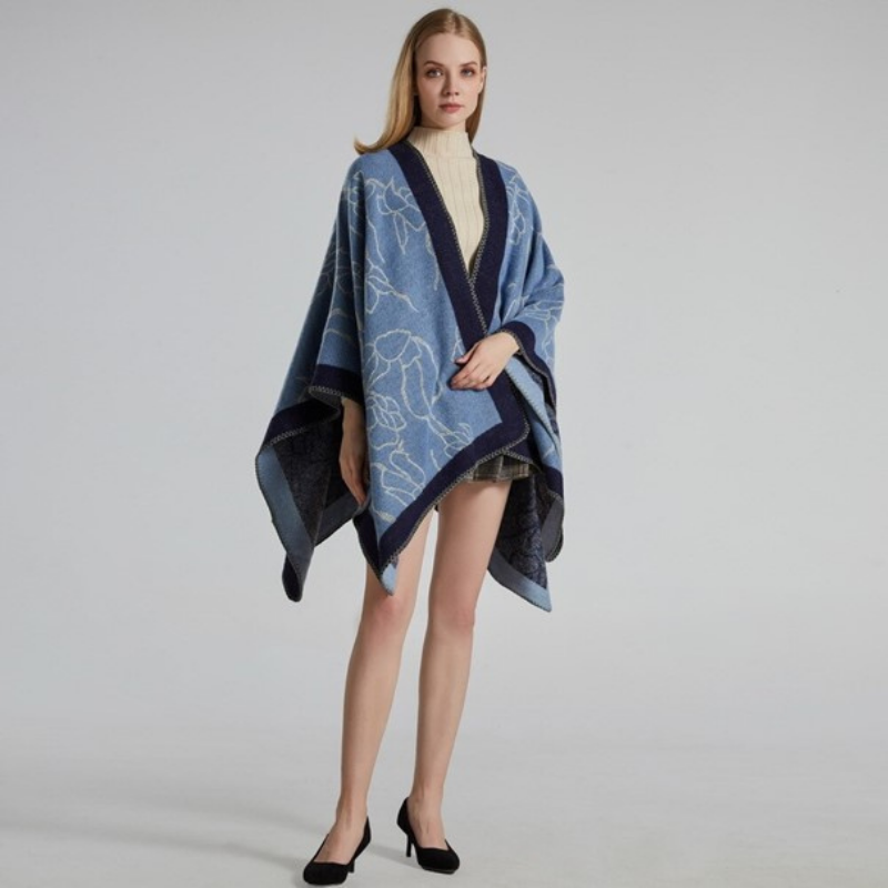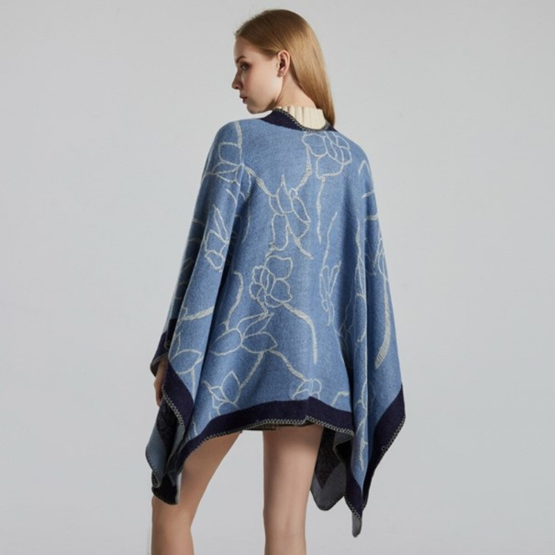 dieses bezaubernde Cape für Damen hat ein zartes Blumenmuster, das Ihnen in diesem Winter einen schicken Stil verleiht! Der Stoff dieses modernen Ponchos ist sehr bequem und wird Sie sanft wärmen. Er passt sich jeder Körperform an und ist eine ideale Alternative zu Übergangsjacken. Werfen Sie ihn einfach über Ihre Schultern, und Sie haben sofort einen Zusatz zu Ihrem Outfit: eine stilvolle Ergänzung zu Ihrer Wintergarderobe!